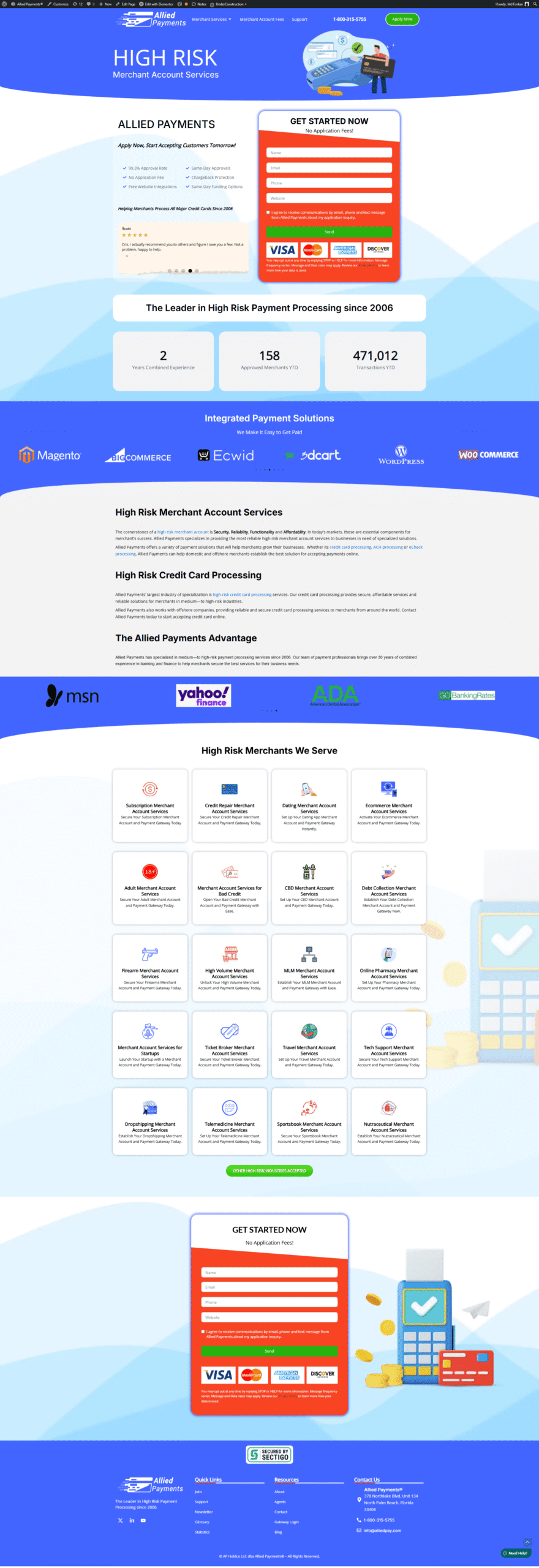 We built the AlliedPay website from scratch using WordPress, Elementor, and the Astra theme, tailored specifically for a high-risk merchant account provider. The project included custom-coded header and footer sections, a dynamic counter plugin, SEO optimization, content writing, and social media marketing. The result was a fast, user-friendly, and conversion-focused website aligned with the client’s industry goals and brand identity.