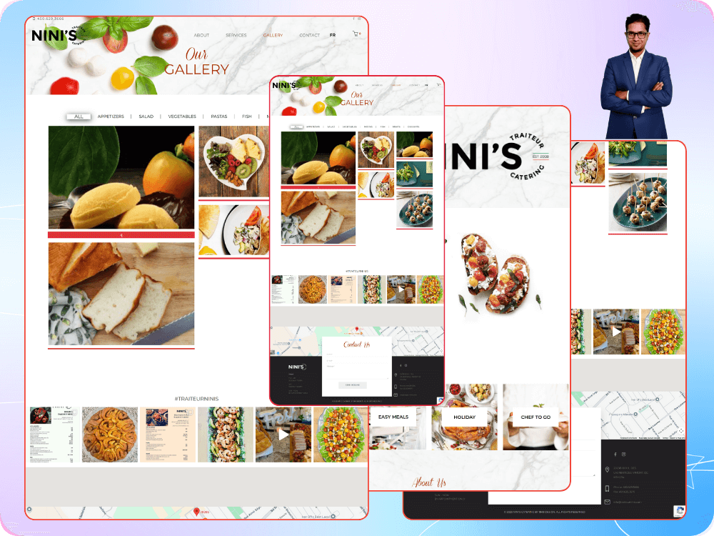 Traiteur Nini’s is a cherished mother-and-son Italian catering and ready-made meal service based in Vimont, Laval, Quebec, built on a passion for authentic homemade cuisine. The client’s challenge was transforming their traditional, word-of-mouth business into a scalable digital entity, capable of managing custom catering bookings alongside sales of ready-made “Easy Meals” and seasonal menus (like the Holiday Menu).