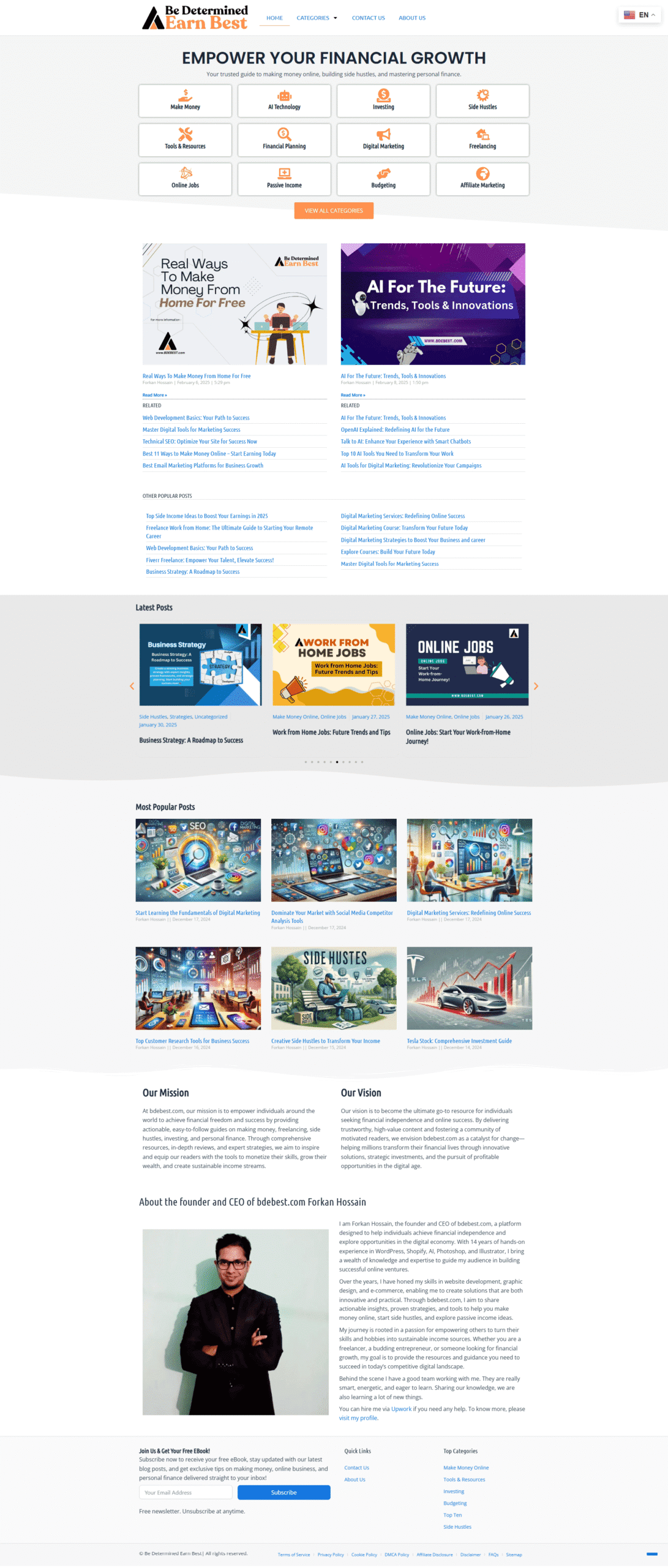 BdeBest.com is a full-scale blogging platform developed as an internal project by Web City Lab to demonstrate our full-stack WordPress development capabilities. This blog was crafted from the ground up using WordPress, Astra Theme, and Elementor, with heavy customization across the site. Our team developed a unique header and footer using custom code, ensuring brand consistency and user-friendliness across devices.